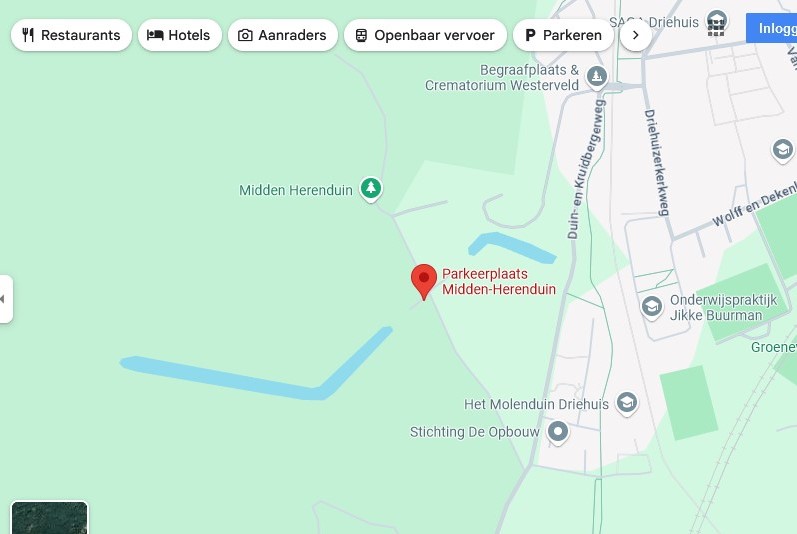 De start is sinds 2024 op het Nationaal Park Z-K, Midden-Herenduin. Dit ligt bijna 1000 meter ten noorden van de oude locatie Duin & Kruidberg. Ook daar is voldoende parkeerruimte voor auto en fiets. Dus richting Driehuis. Ingang tegenover “Lijn 5”